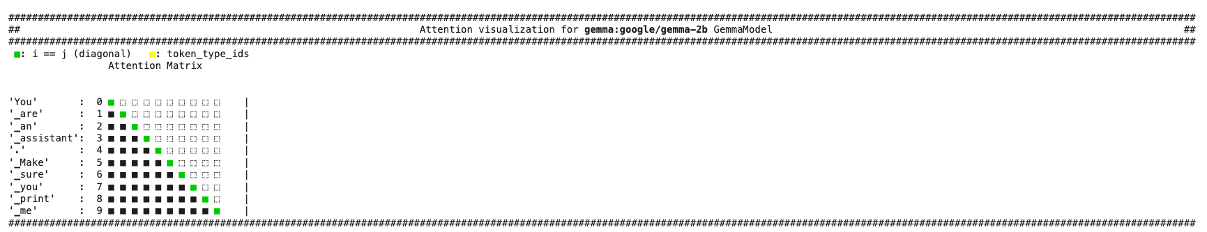 from transformers.utils.attention_visualizer import AttentionMaskVisualizervisualizer = AttentionMaskVisualizer("google/gemma-2b")visualizer("You are an assistant. Make sure you print me")