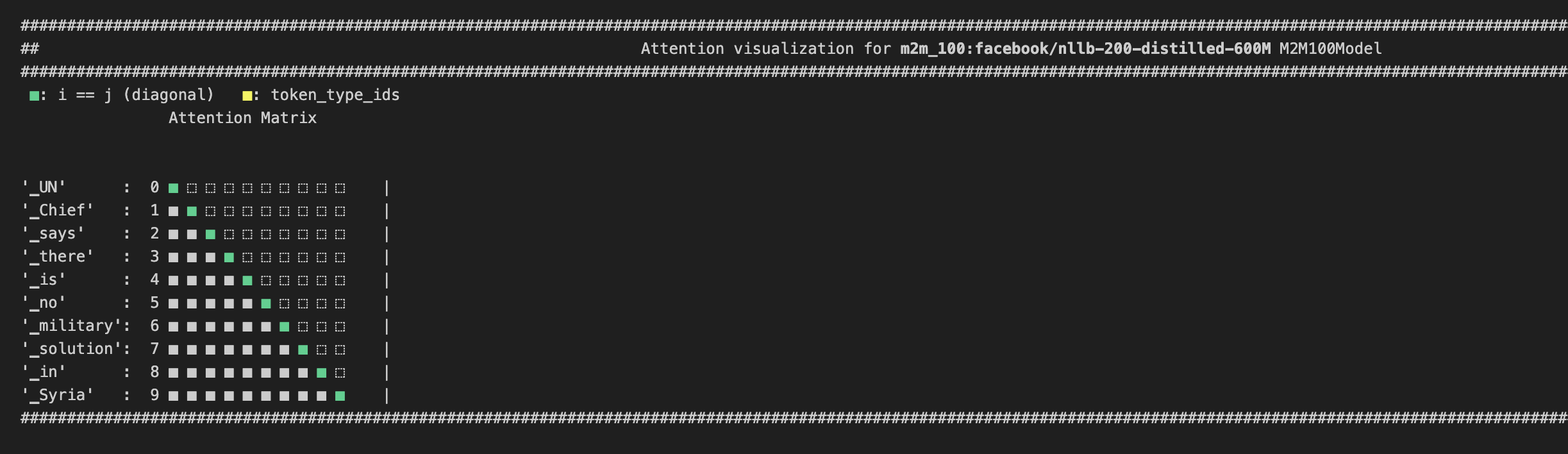 visualizer = AttentionMaskVisualizer("facebook/nllb-200-distilled-600M")visualizer("UN Chief says there is no military solution in Syria")